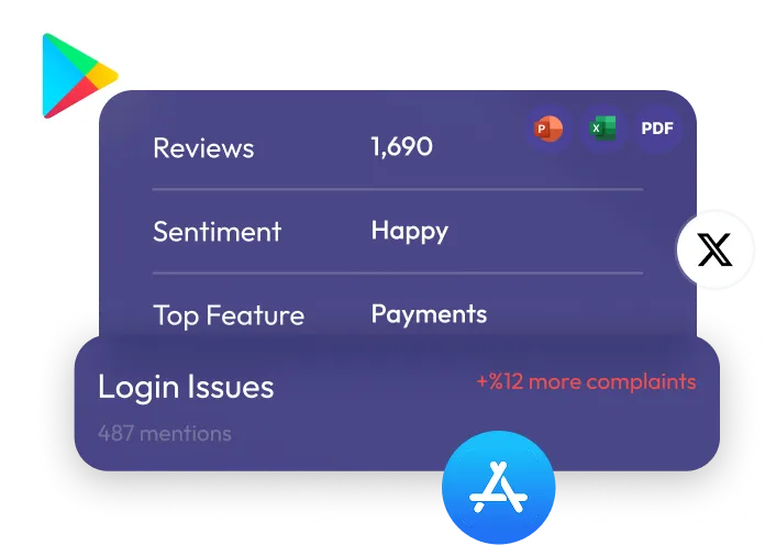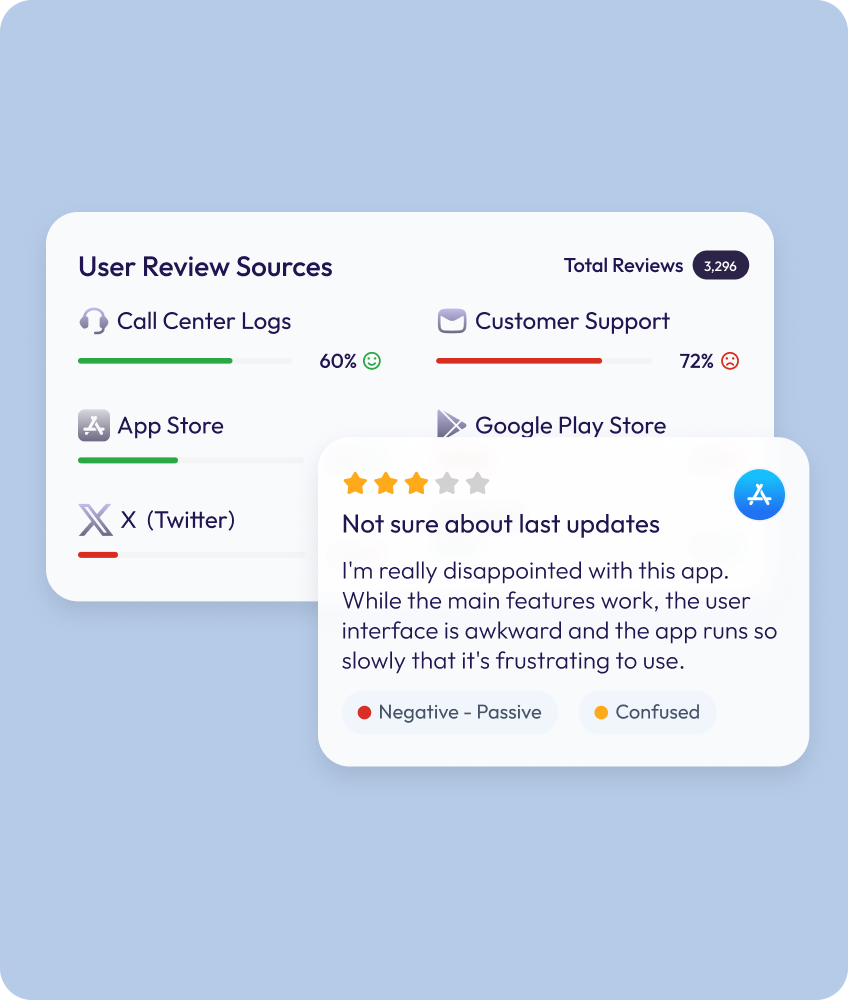 Collect feedback from App Store/Google Play reviews, social media, and internal sources—all in one place.